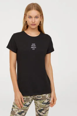 H&M literalmente puso música en su ropa. O bueno, no literalmente porque no suenan, pero sí estampó frases de las canciones de Ariana Grande en t-shirts y bodys que, con el simple hecho de leerlas, harán que te den unas inmensas ganas de comenzar a cantarlas. “Break up whit ur gf” y “Thank U, Next” son tan solo algunos ejemplos.